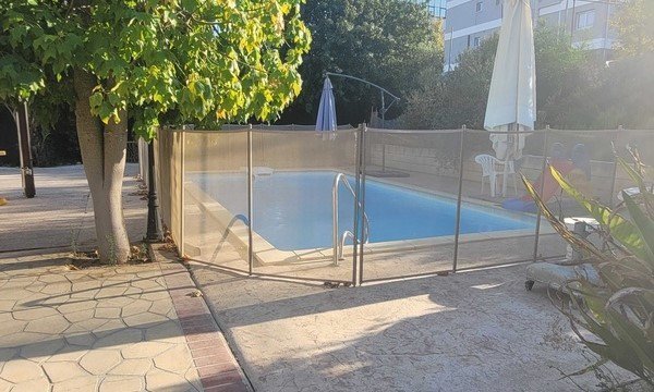 It is furnished with all electrical appliances, parking space, a swimming pool, a huge yard with garden, and A/C units in all rooms.