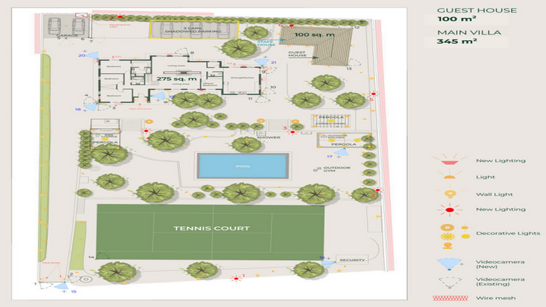 - Security: Ajax alarm, 21 Hikvision CCTV cameras, automated gates & lighting