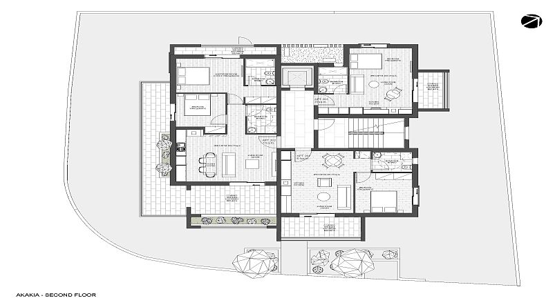 The apartment complex consists of five modern apartments, two studios and one penthouse on the top floor. All units have verandas, and the penthouse has a roof garden with an outdoor BBQ space