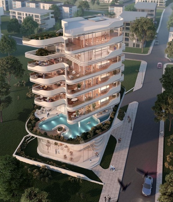 Building equipped with various luxury amenities including luxury entrance lobby, lounges, gym, outdoor pool, jacuzzi with kiosk and pool bar, rooftop garden and terrace, spacious underground parking and charming landscapes and green areas throughout.