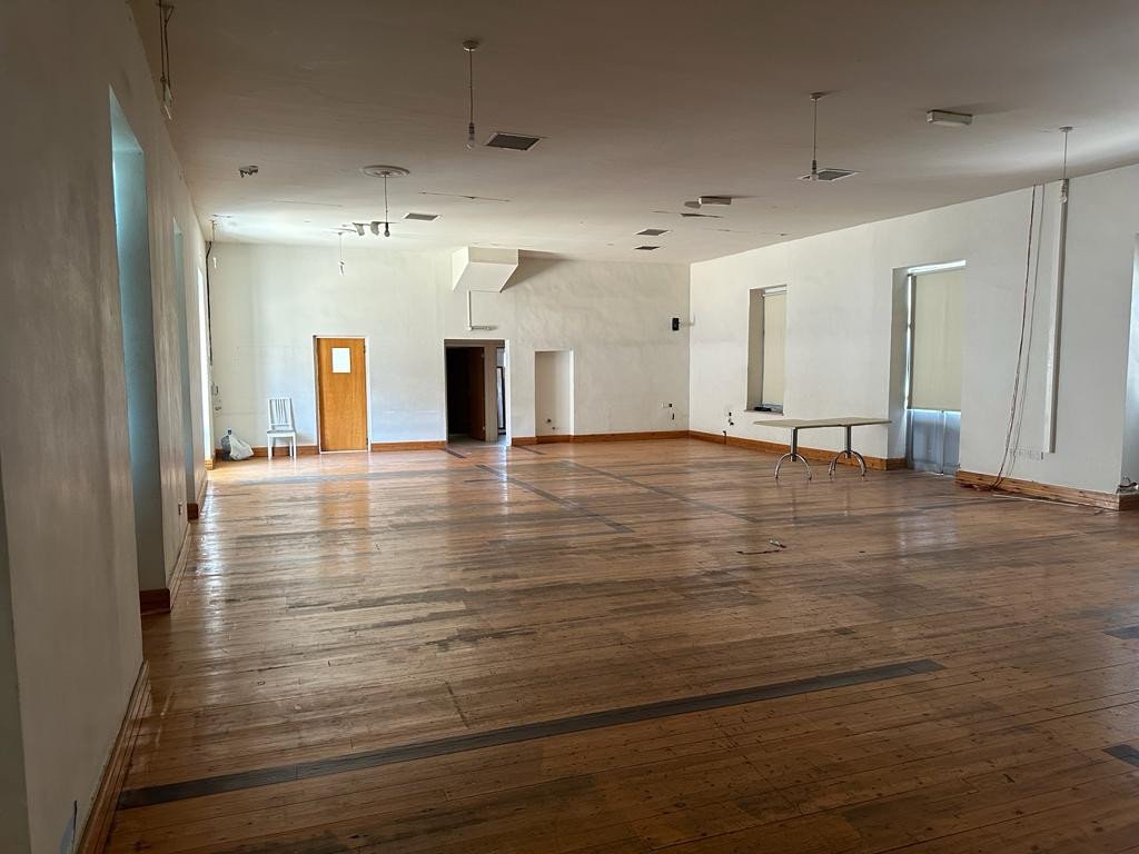 a large hall that can be adapted as a restaurant, a venue for conferences, meetups, etc. Also, 2 men's and 2 women's toilets. Separate fire exit.