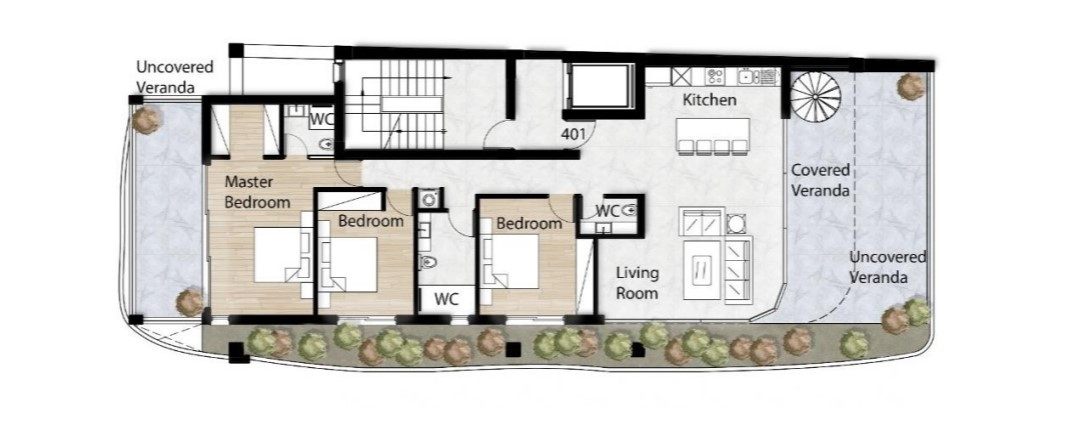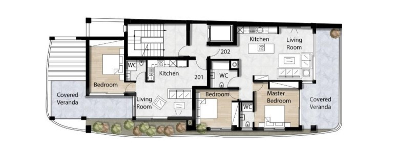 3 two-bedroom apartments