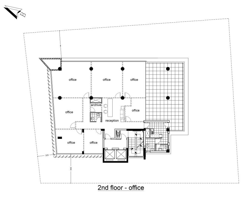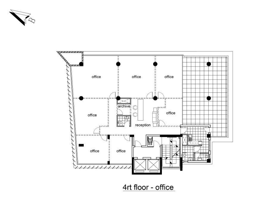 The project comprises of a ground floor office with mezzanine and lobby area at the entrance and 4 typical floors with Reception area.