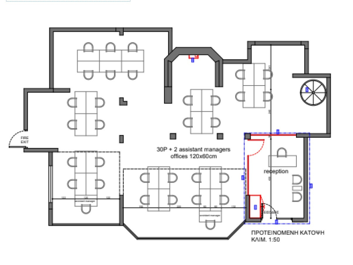 Open plan area + separated offices / rooms