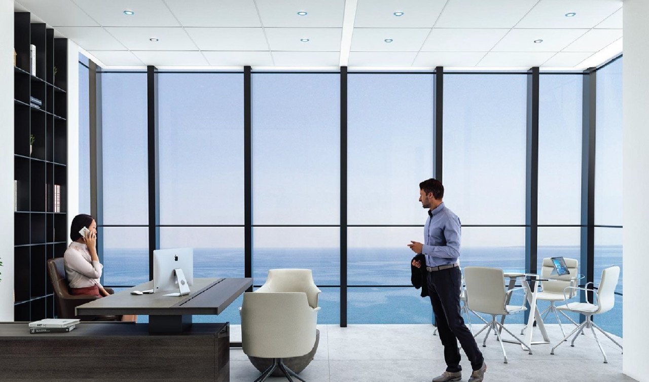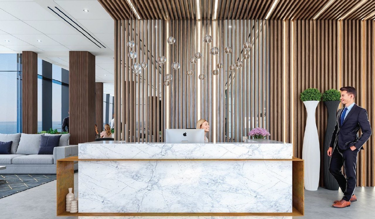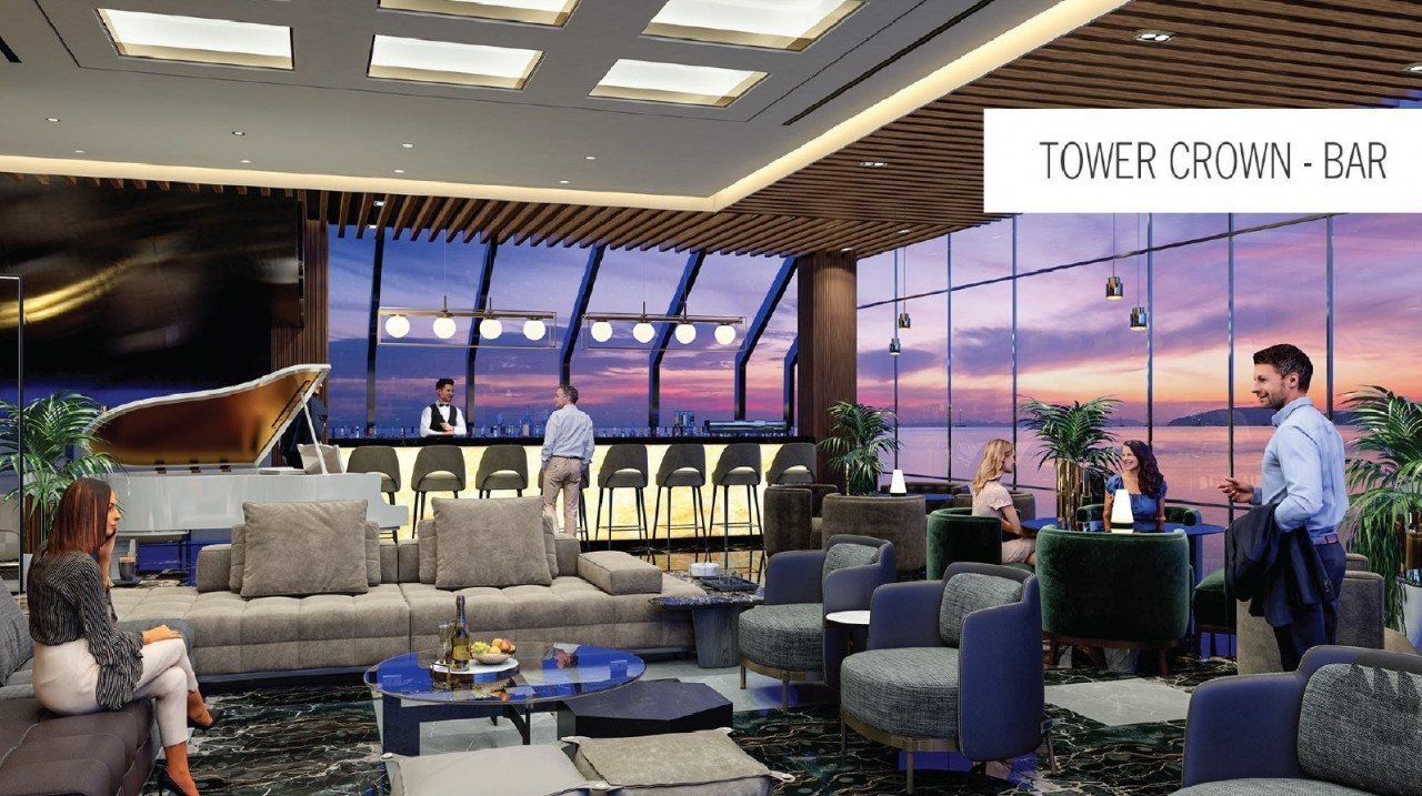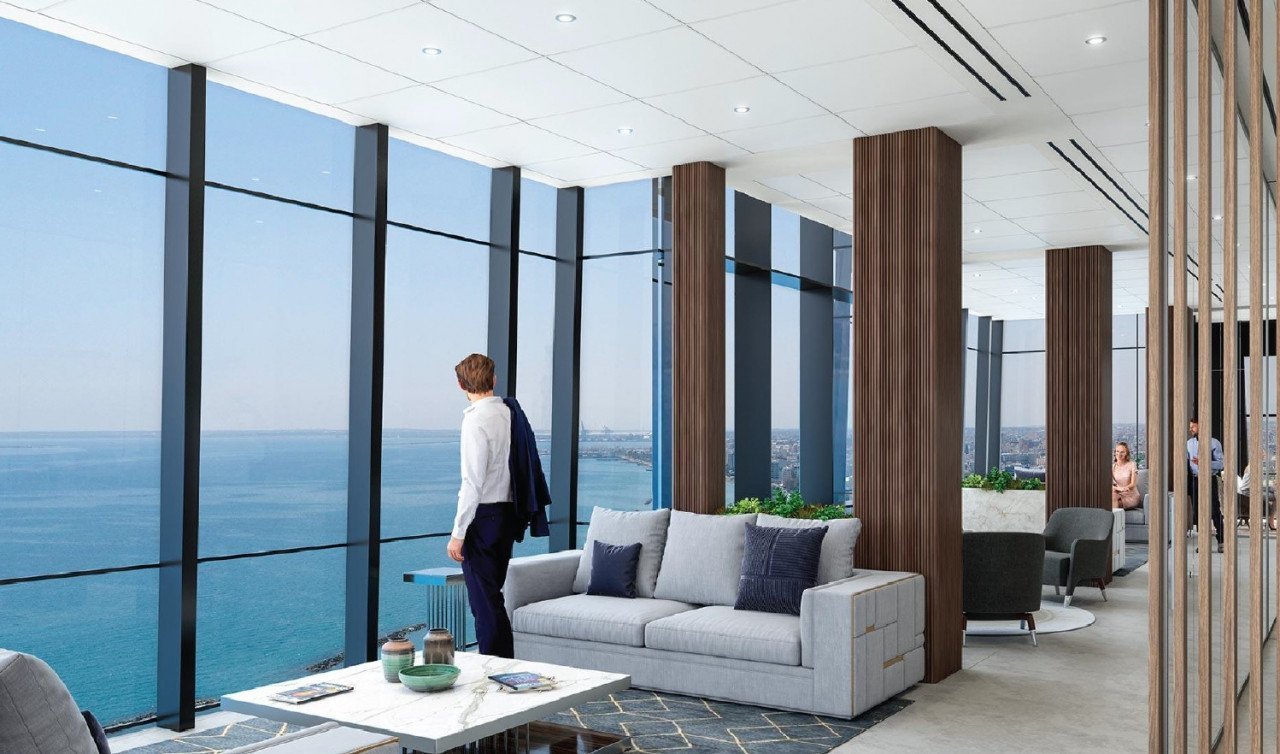 With clear unobstructed views all around for miles, the building features a mix of offices, gym, lounges and a glorious roof-top bar. The Tower is a 103m-tall next generation skyscraper with all modern features and advances in architectural research.