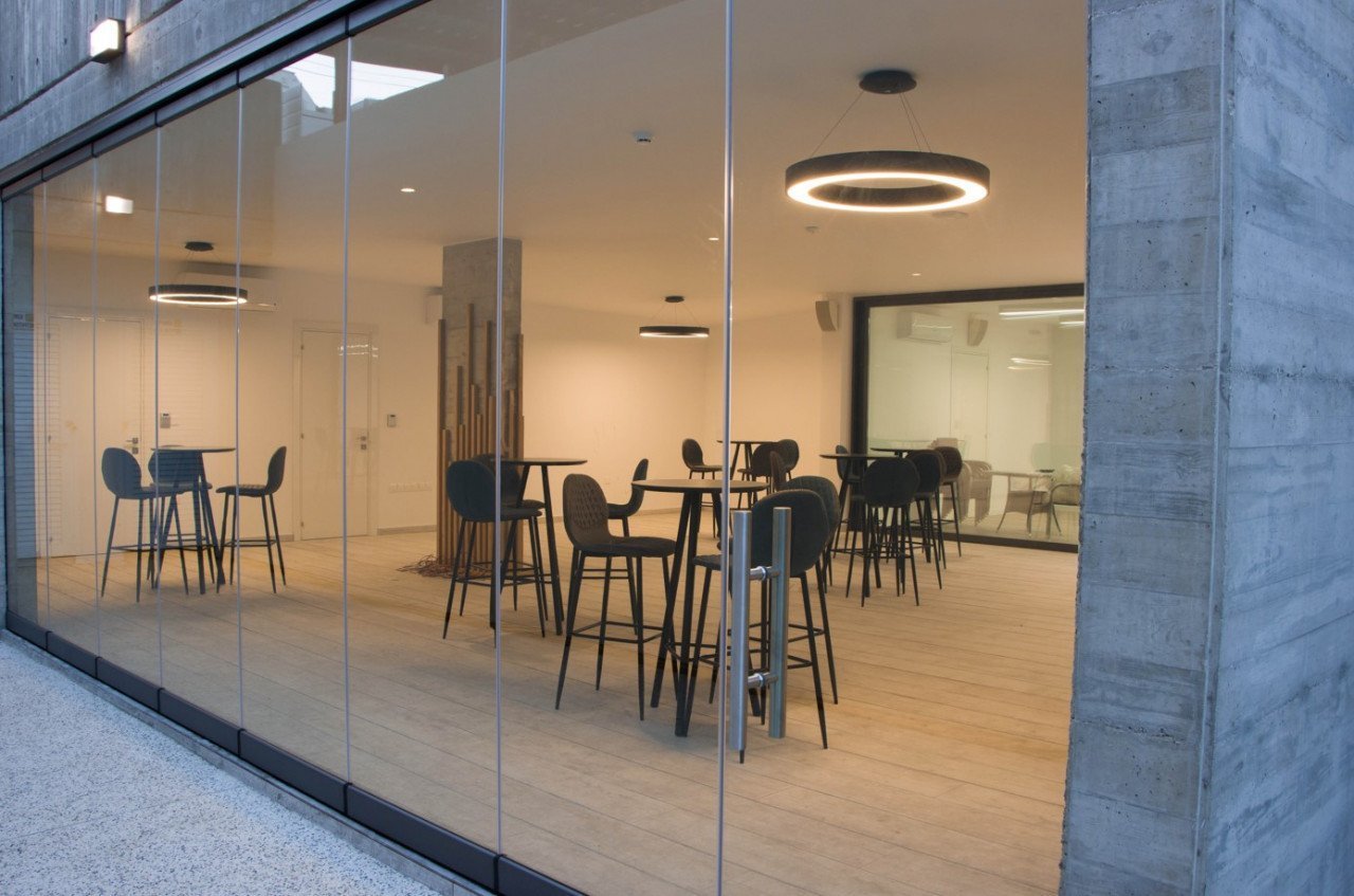 The basement where there are the gym place, provision for sauna, locker rooms, laundry room, server room, café room and garden
