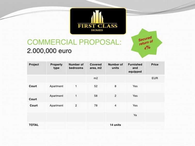 Apartment building is in the city center. 12 apartments in total. Each apartment has an open plan living room with fitted kitchen, bedrooms, bathrooms, balconies as well as equipped with air conditioning units. The building offers covered and open parking spaces and store rooms in the basement. All apartments are being rented out. Title deeds available.