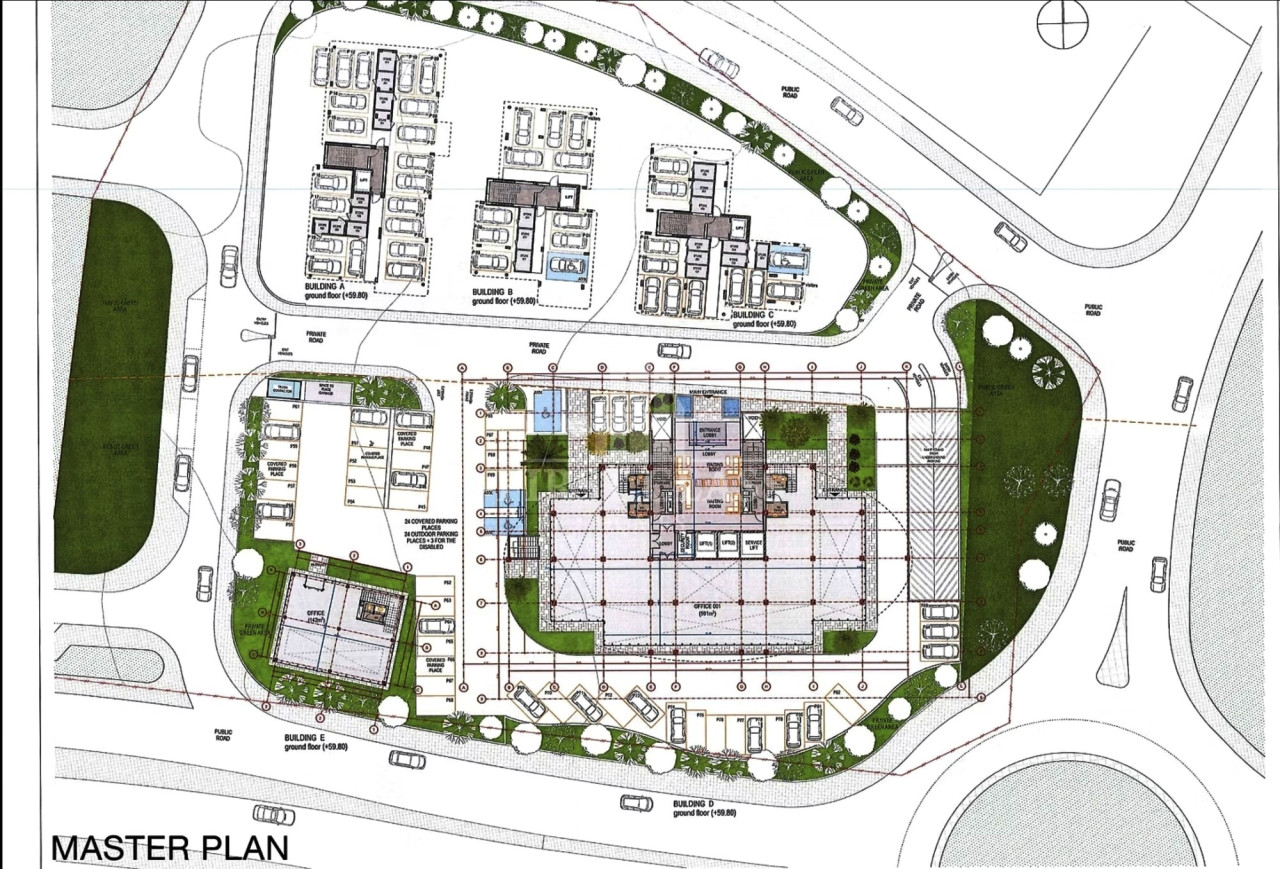 Big Prime Corner Land in a promitment location with High Visibility and Accessibility. Land is available for sale including Ready Plans & Permits for a Luxury Modern Project, consists of: Stunning oval-shaped office building of 5 floors Annex small commercial building 3 residential blocks of total: 38 modern apartments with sea & mountain views (10x 2 bedroom and 28x 1 bedroom apartments)  Analysis Land size: 9,350 sq.m. Total buildable area (without verandas) 7,767 sq.m. Big commercial building has a total salable area:  4,892 sq.m. + 619 sq.m. roof garden Annex small commercial building has a total salable area:  398 sq.m. + 135 sq.m. roof garden 3 Residential blocks has total saleable area:  2,865 sq.m. + spacious roof gardens Grand total salable area  Commercial: 5,290 sq.m. + 754 sq.m. roof gardens Residential:  2,865 sq.m. + spacious roof gardens Estimated sales ROI: 45-55%