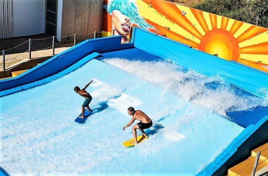 The most attractive part of course is the first and only artificial surfing wave simulator in Cyprus. Anyone can try out this form of sport activity. And this doesn’t require any specific knowledge or previous experience.