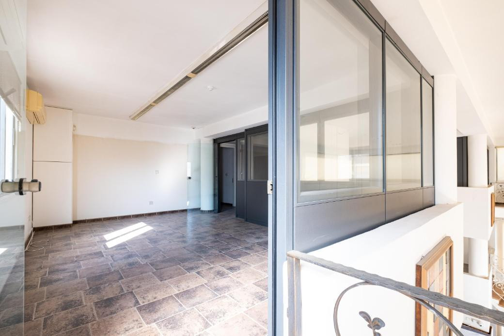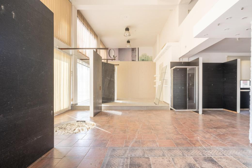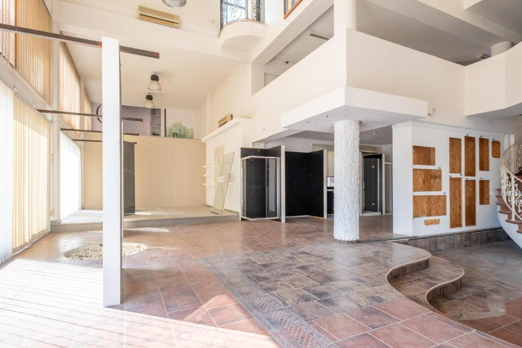 The basement has an area of 345 sq.m., the showroom has a total area of 250 sq.m. and the mezzanine 110 sq.m. The office on the first floor has an internal area of 110 sq.m.