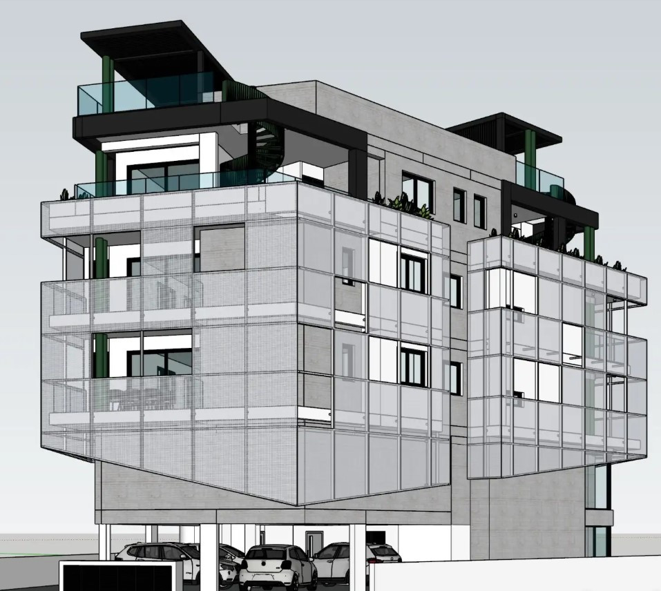 A town planning permit is expected shortly for a new development comprising shops, offices, and residential units. Architectural plans and 3D visualizations for the proposed project are already available.