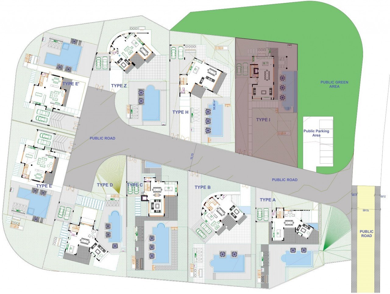 This site is ideal for someone who wants to build the home of their dreams as soon as possible because it comes with a separate title deed and building permit. The site is perfect for constructing a three-bedroom villa with 262 m2, 46.35 m2 of covered verandas and a 52.60 m2 swimming pool. Additionally, the green area of the project has already been developed, whereas the plot owner is not obliged to develop it themselves.