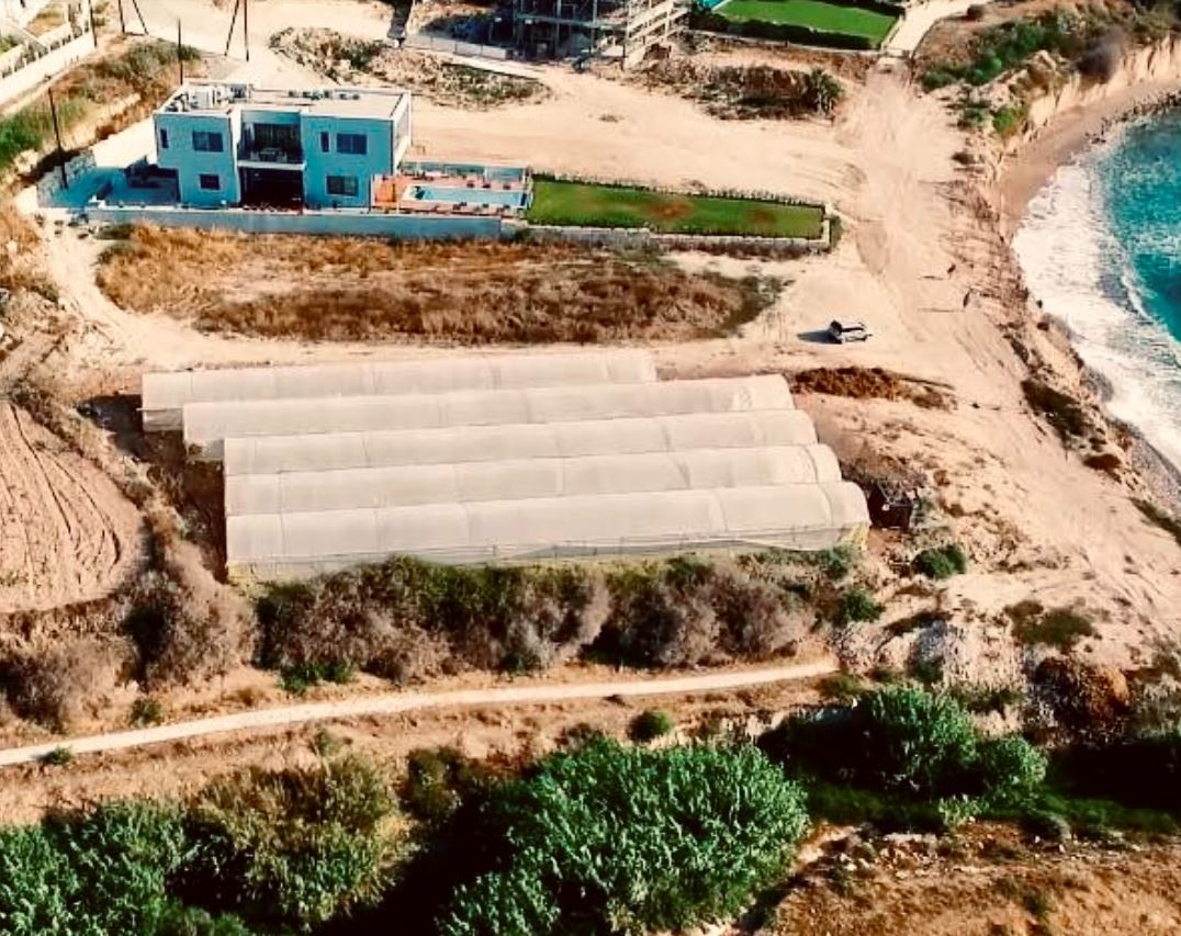 This plot is located directly on Kissonerga beach, in the Paphos district. Very near from the field, there is a wide range of services e.g restaurants, beach bars and very close to 5* hotels. It offers an unobstructed view of the sea and the surrounding area.