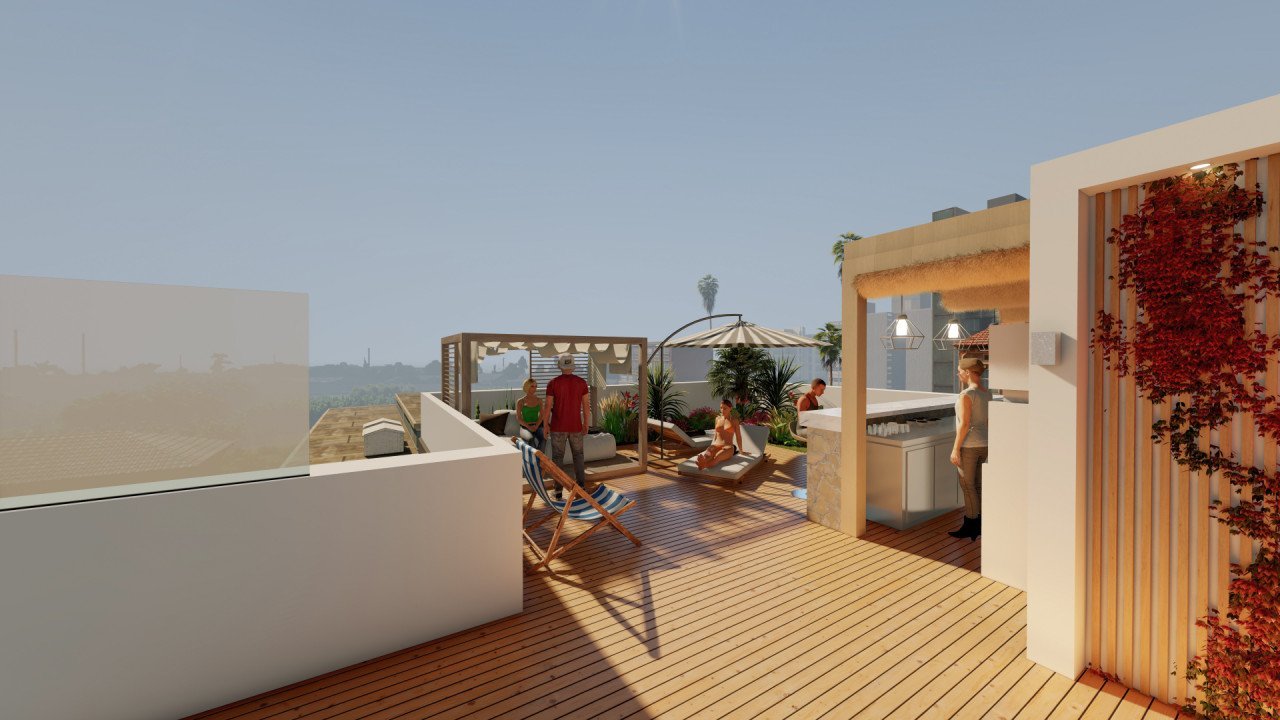 Roof Garden with a pool (3m X 7m), barbeque area, sitting & relaxing area, sun beds with umbrellas, shower and W.C on the 4th Floor. Completion of Project 12 – 15 months.