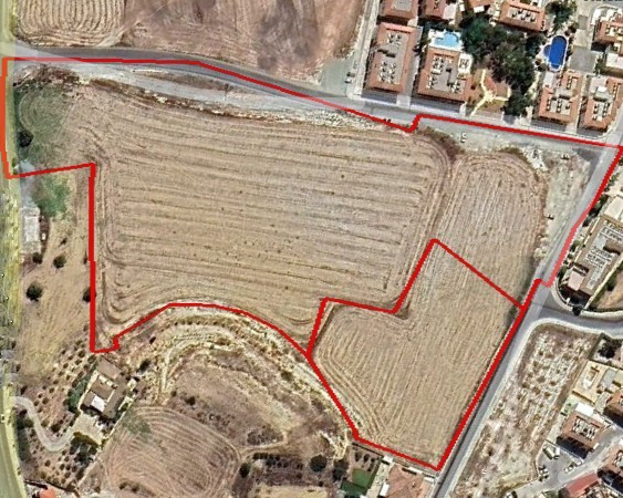 Two adjoining fields in Tersefanou, Larnaca.The two fields have a total area of 34,009sqm, have a smooth sloping surface and benefit from c. 237 m road frontages.The immediate area comprises of residential developments, as well as undeveloped plots of land.The property is covered by all utility services (water, electricity and telecommunication).It falls within planning zone H2 with 90% building density, 50% coverage, 2 floors and a maximum height of 8.3m.