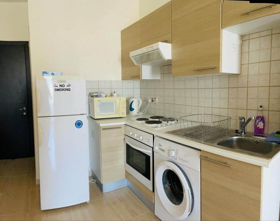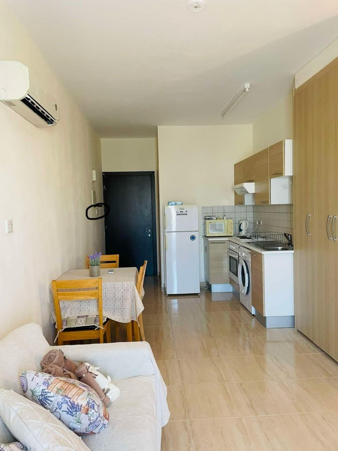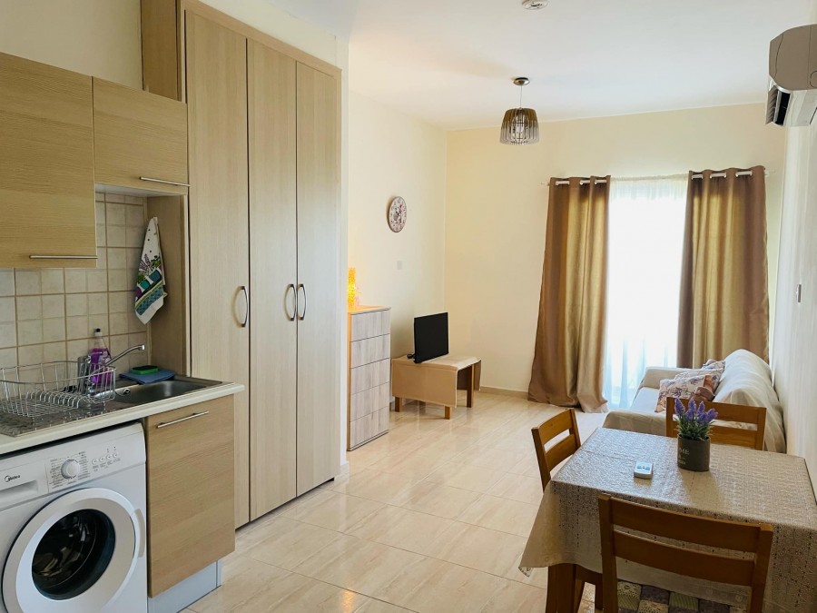 Studio apartment in Pegeia Municipality in Paphos District, at a distance of 500 meters (approx.) west of Pegeia Town Hall and 250 meters (approx.) southwest from Grigoris Auxentiou Avenue. The apartment is located on the 2nd floor of a building . The property consists of an open plan living room/kitchen, shower with WC and a covered veranda.